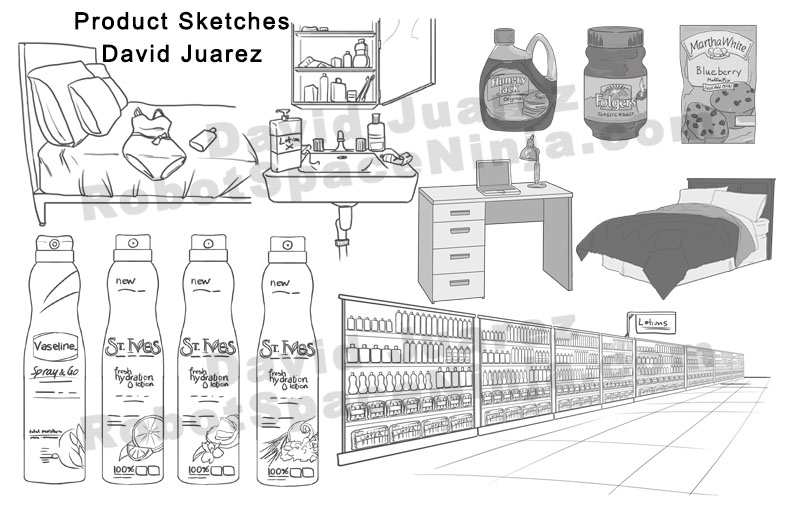 Back when I worked in house as the lead illustrator at an advertising agency, I’d often be asked to create drawings and sketches that would be used to bring different campaigns to life. I would cook up different drawings that the designers would use when putting together decks for clients or for using in the different promotional materials. Sometimes it was full scenes, sometimes it was just product inserts and other small items. Clear communication of the item and related story is paramount to successfully getting the idea across.