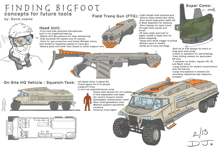 I created some art for a game that was in development back in 2013. It was loosely based on the Finding Bigfoot craze at the time. The idea was as a single player or co-op, you would search different areas, gather clues and bring in a living bigfoot. There was a fun looking map you got a choose locations from. I believe that actual gameplay was pretty spooky in the night search mode.